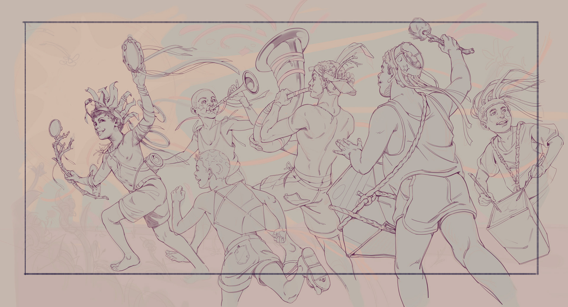 Essa ilustração junta muitas coisas que tenho uma ligação íntima. Começando pela inspiração inicial, minha infância e os amigos que tive naquela época. Aqui não há nenhum deles especificamente retratado, mas são meninos que simbolizam as pessoas com quem cresci e brinquei na minha querida Vista Alegre, bairro onde cresci, aqui em Limeira no interior de SP. Parecia que havia uma certa inocência naqueles anos 90, com uma turma de moleques de idades bastante variadas, e eu tentei mostrar isso aqui.